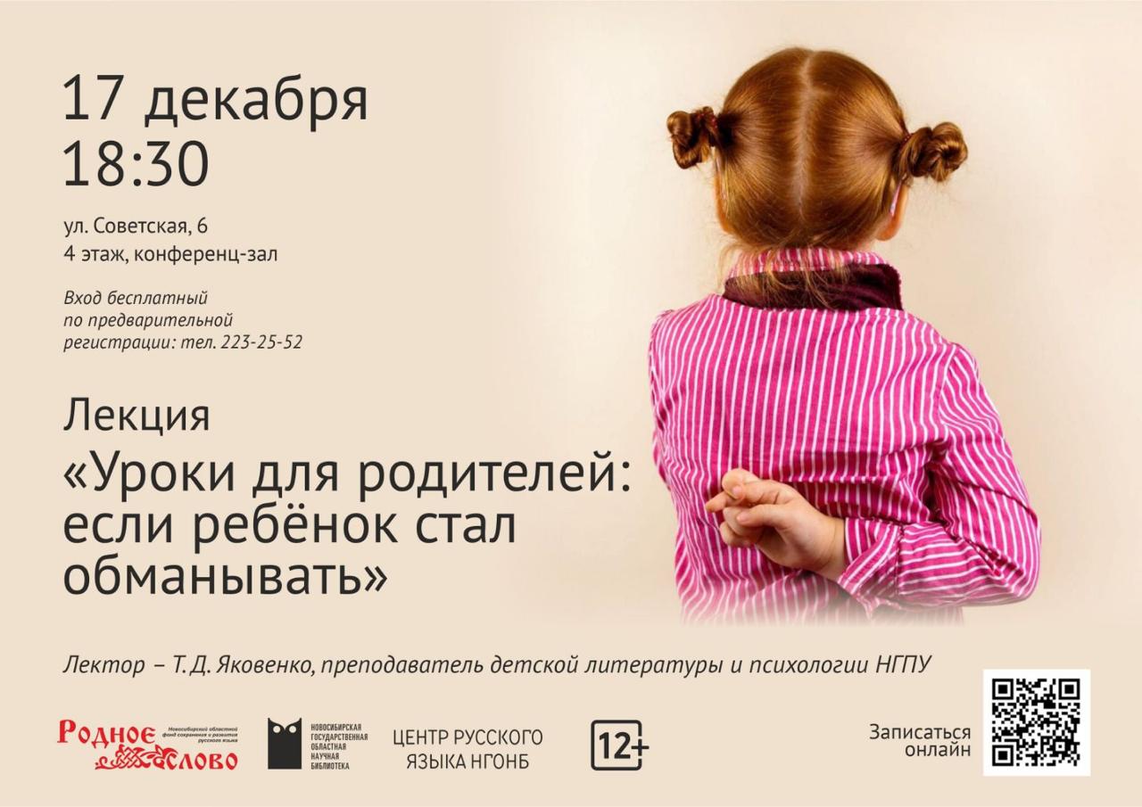 17 декабря состоится лекция "Уроки для родителей: если ребенок стал обманывать"